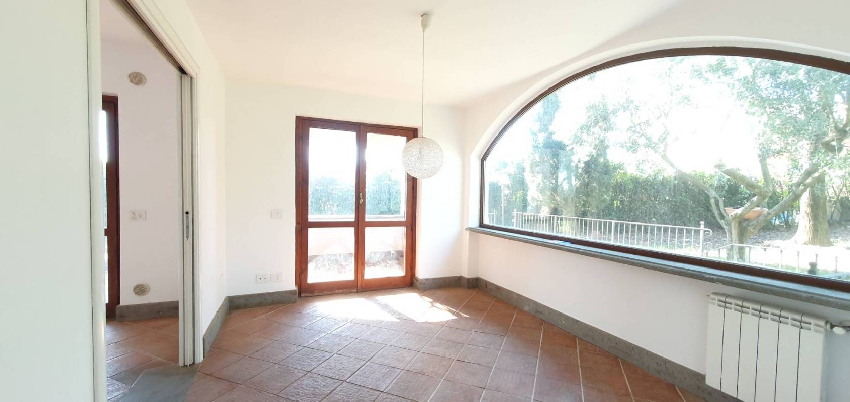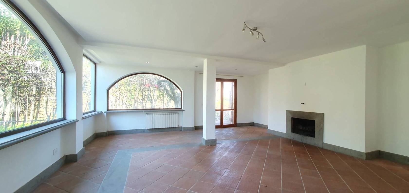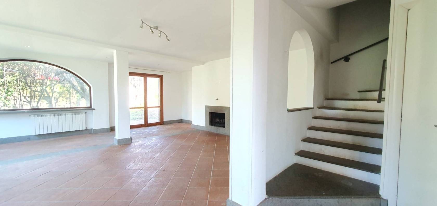 L'immobile è composto al piano terra da ingresso, ampio salone con camino, sala da pranzo, cucina abitabile, bagnetto di servizio cieco e portico coperto; al primo piano è presente disimpegno, camera da letto matrimoniale, camera da letto singola con bagno interno e soppalco, bagno finestrato con vasca e doccia, ripostiglio e due terrazzini con uscita dalle rispettive camere presenti al piano; infine al piano seminterrato, dove tutti gli ambienti sono finestrati, è composto da un grandissimo salone con camino parzialmente diviso in due ambienti dal vano scala, un'ampia stanza con predisposizione per la cucina, bagnetto con doccia, disimpegno, camera con piccola cabina armadio e bagno finestrato con doccia.