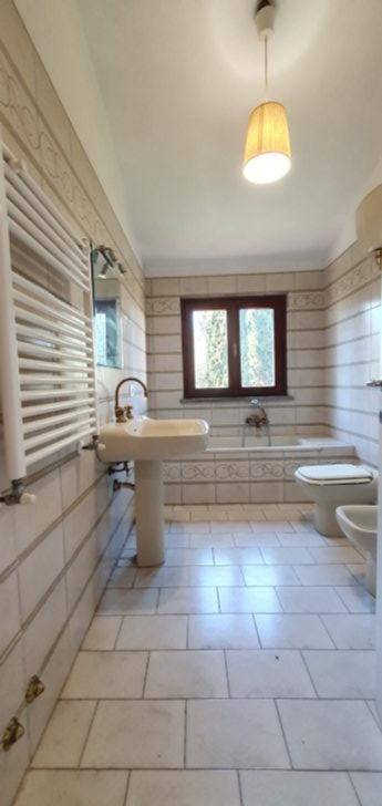 L'immobile si presenta in buone condizioni generali, in particolare è caratterizzato da portone blindato, infissi in legno con vetrocamera risalenti all'epoca di costruzione, grate in ferro solo al piano seminterrato, pavimentazione al piano terra in cotto “Toscano”, al primo piano in parquet ed al piano seminterrato in gres porcellanato; l'impianto elettrico è stato completamente rifatto nel 2016 ed è in corrugato sfilabile con salvavita, la villa è termo-autonoma con caldaia esterna posizionata nel vano caldaia, alimentata a gas GPL con bombolone interrato, impianto termico in rame con radiatori in alluminio bianco, il cancello è automatico con apertura sia pedonale che carrabile.
