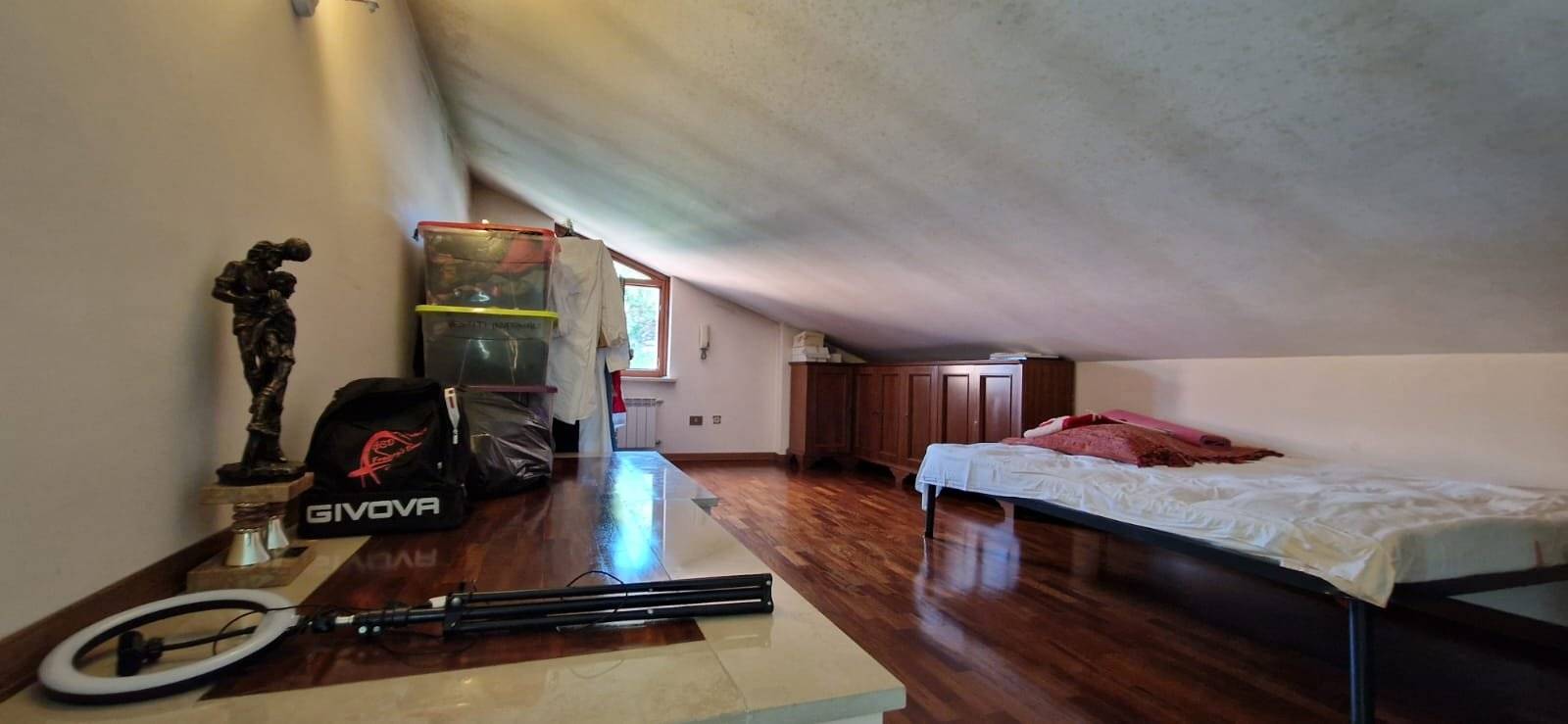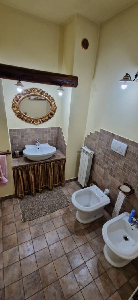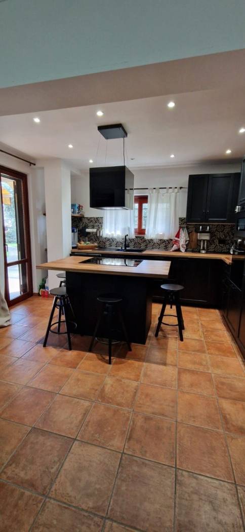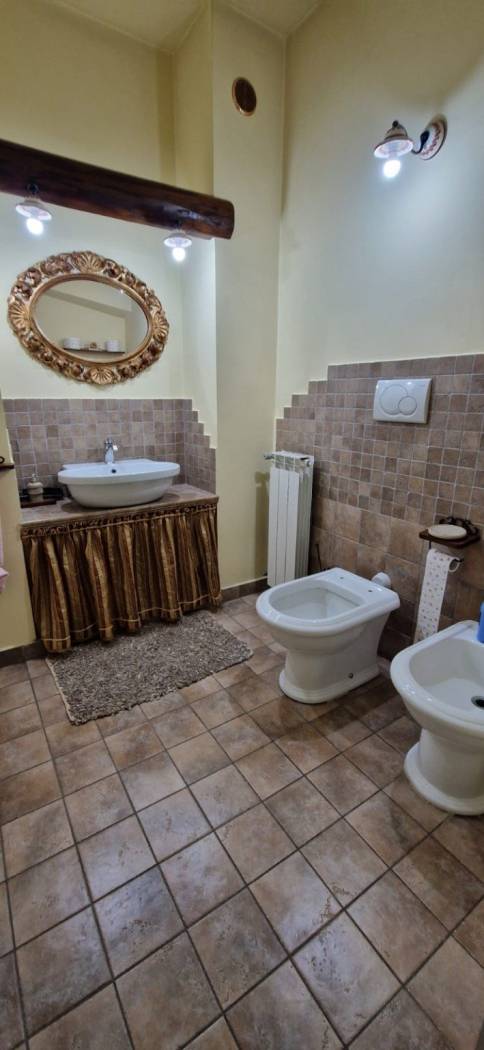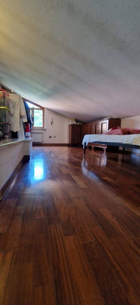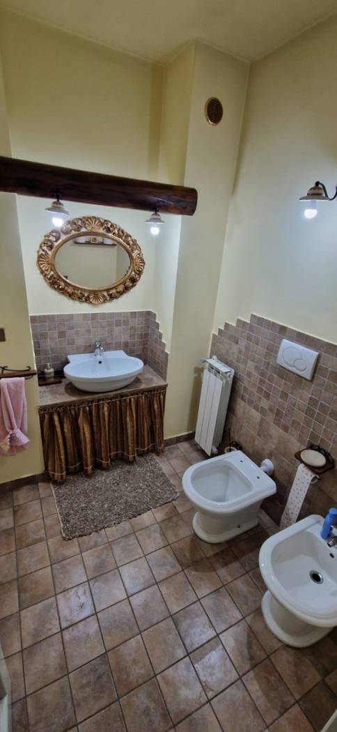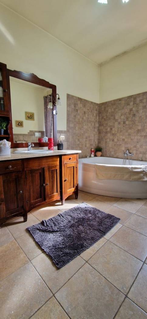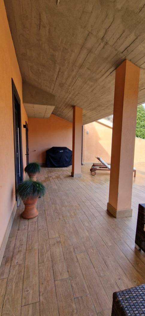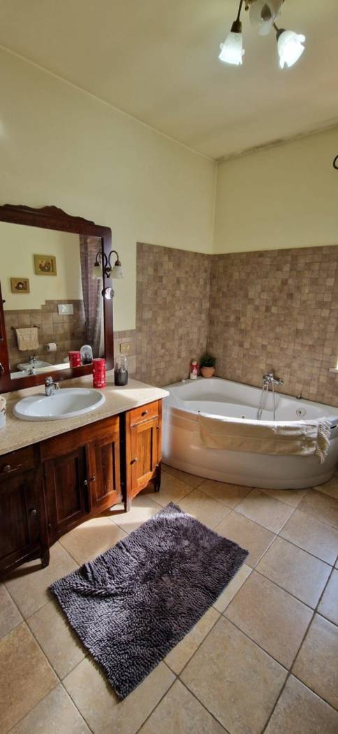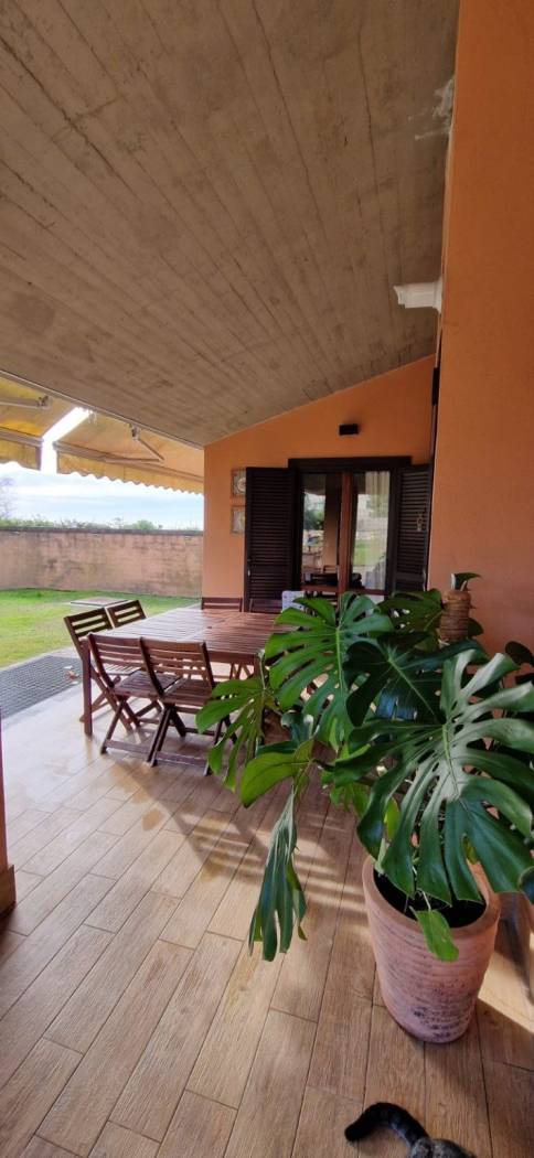 La villa di 270 mq, ideale per nuclei familiari numerosi grazie all'ampia metratura. E' situata in una zona molto centrale, vicino alla stazione dei Carabinieri, a 800 metri dal paese, offre un contesto residenziale piacevole e immerso nel verde, tranquillo ma non distante dai servizi di prima necessità. Costruita nel 1995, l'immobile ha l'ingresso principale nell'ampio porticato dove in primavera/estate è possibile mangiare all'aperto. Entrando dal portone corazzato, al piano terra, troviamo un ampio salone, una zona pranzo ed una cucina a vista, un antibagno e un bagno. Una comoda rampa di scale conduce al piano primo che ospita un disimpegno, due camere matrimoniali (possibilità di creare due camerette) ed un bagno. Al piano secondo mansardato troviamo un'ampia camera ed un ulteriore bagno.