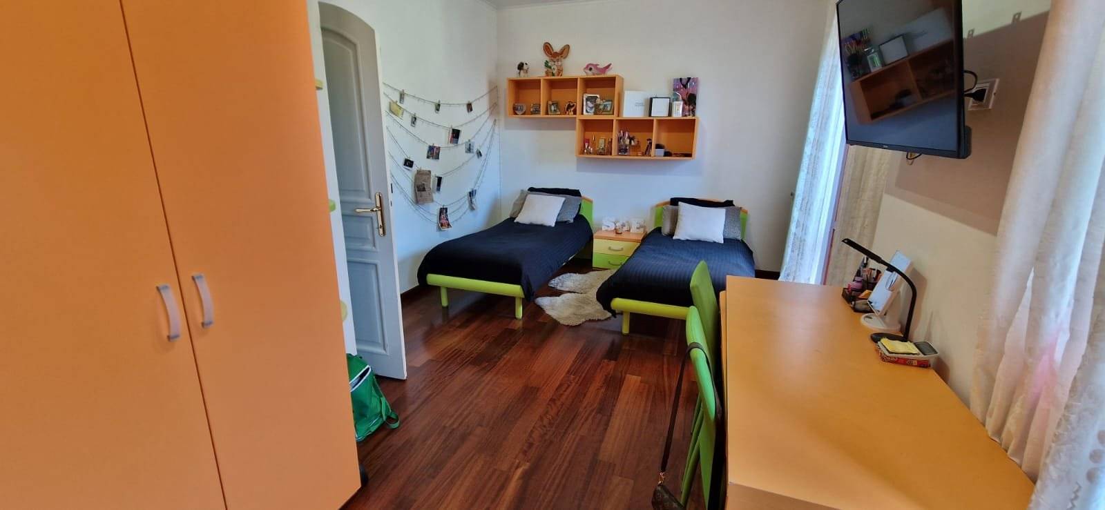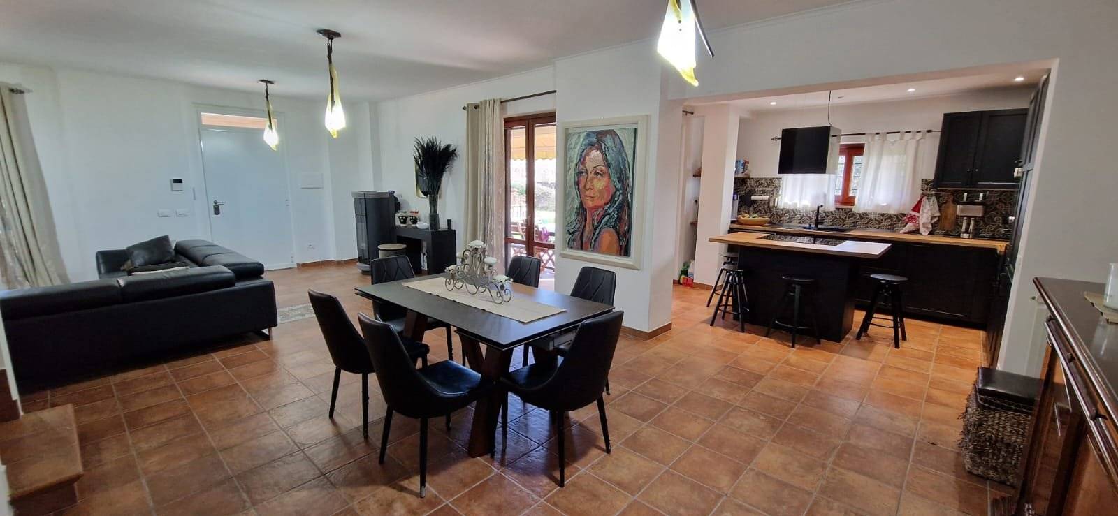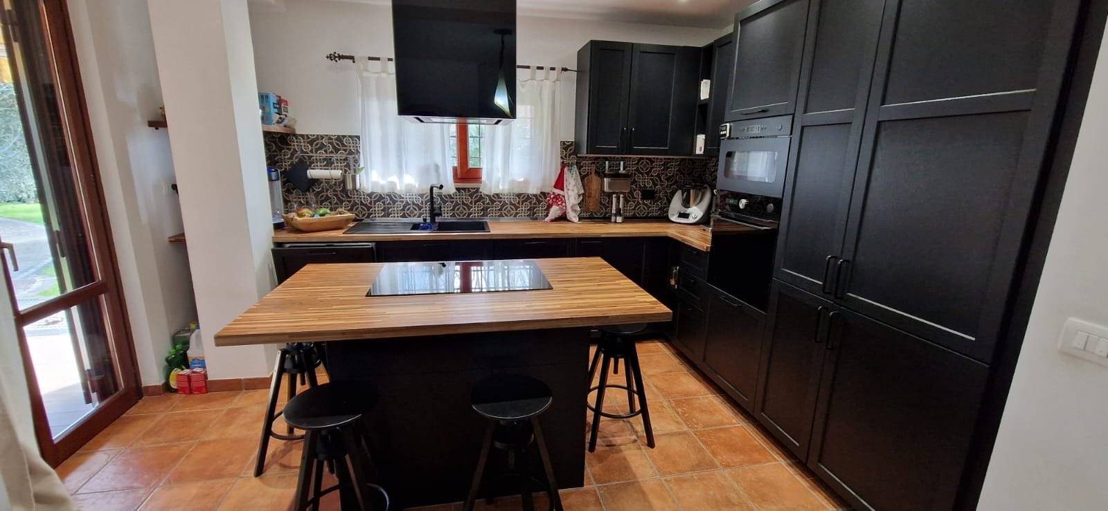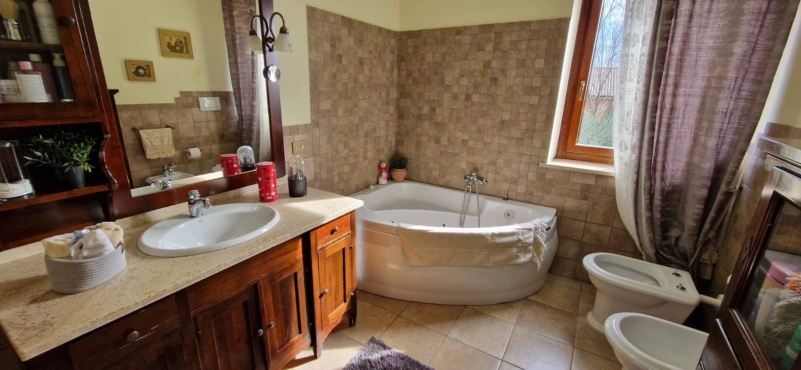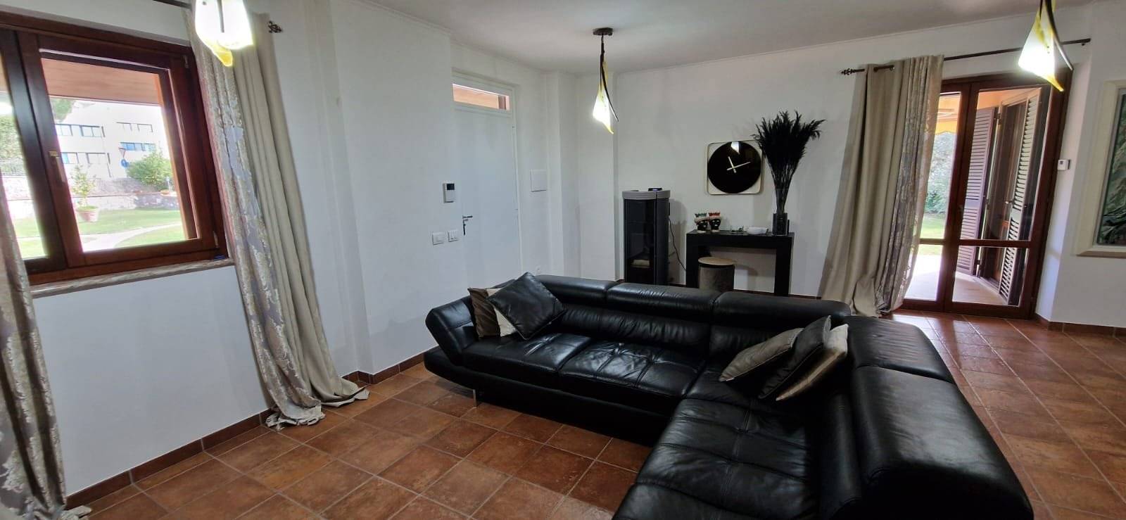 La villa di 270 mq, ideale per nuclei familiari numerosi grazie all'ampia metratura. E' situata in una zona molto centrale, vicino alla stazione dei Carabinieri, a 800 metri dal paese, offre un contesto residenziale piacevole e immerso nel verde, tranquillo ma non distante dai servizi di prima necessità. Costruita nel 1995, l'immobile ha l'ingresso principale nell'ampio porticato dove in primavera/estate è possibile mangiare all'aperto. Entrando dal portone corazzato, al piano terra, troviamo un ampio salone, una zona pranzo ed una cucina a vista, un antibagno e un bagno. Una comoda rampa di scale conduce al piano primo che ospita un disimpegno, due camere matrimoniali (possibilità di creare due camerette) ed un bagno. Al piano secondo mansardato troviamo un'ampia camera ed un ulteriore bagno.
