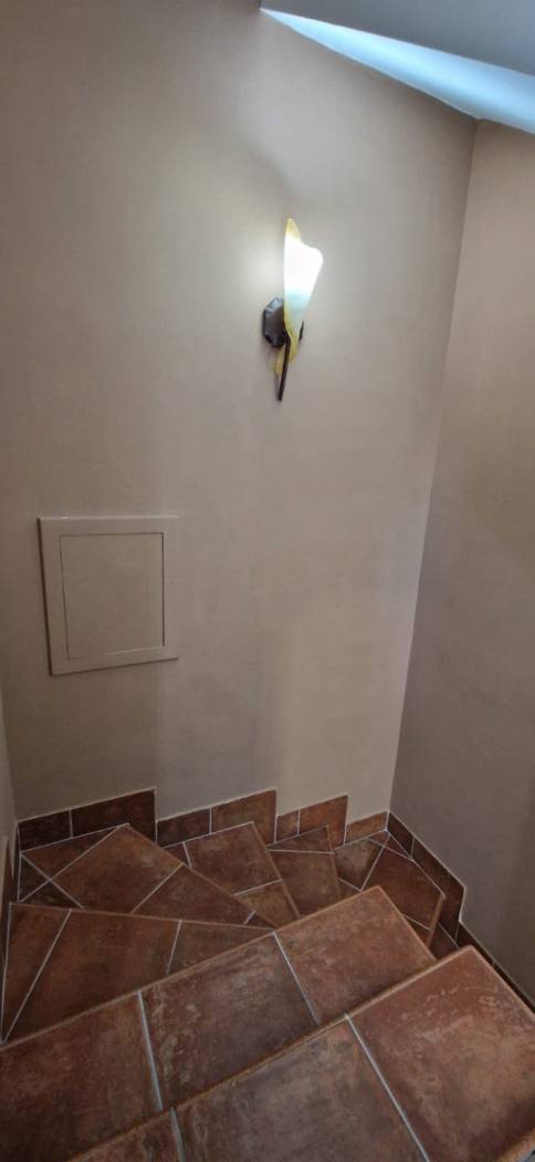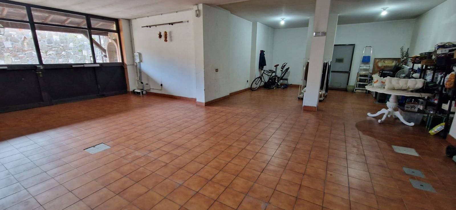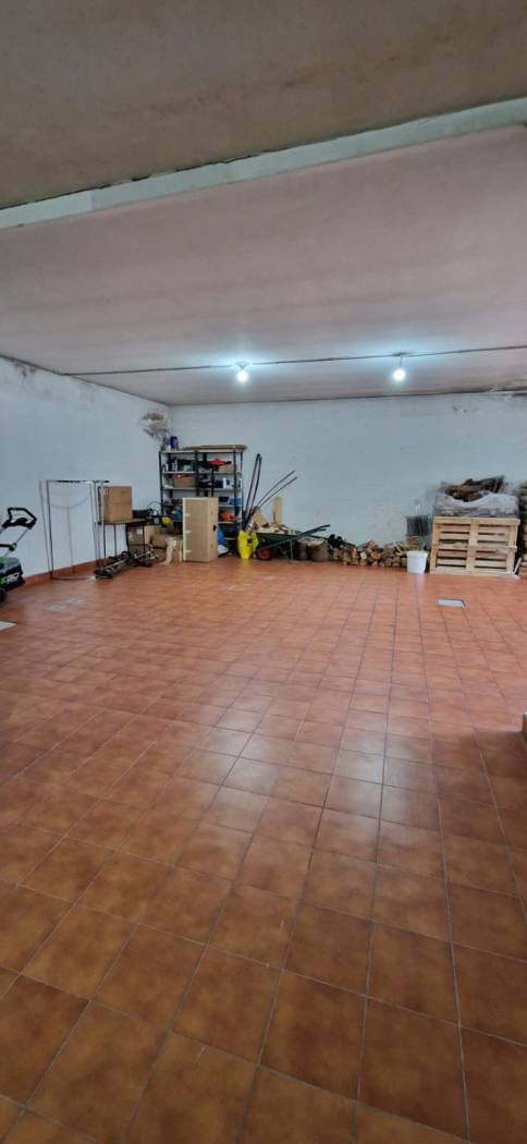 Al piano interrato è presente un'ampia sala hobby con camino e due finestre alte, una camera da letto matrimoniale (finestra alta), un bagno ed un grande garage di circa 100 mq con porta scorrevole automatica corazzata.