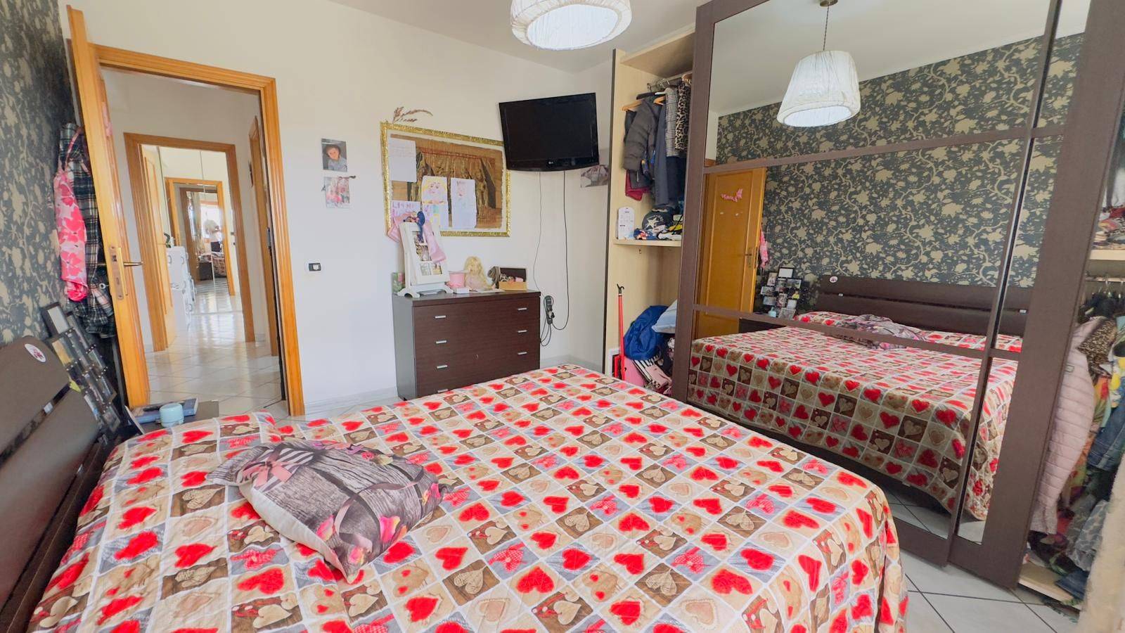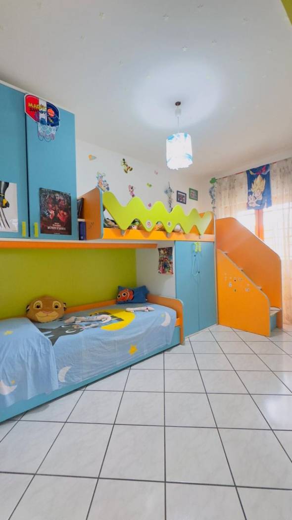 L'immobile è composto da un ampio salone, cucina abitabile, disimpegno, camera da letto matrimoniale, due camere da letto singole, ampio bagno finestrato con vasca idromassaggio, due balconi, cantina di circa 6 Mq, garage 18 Mq.
