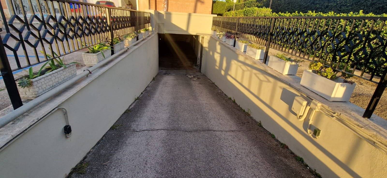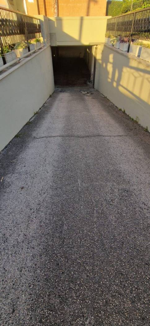 L'accesso avviene tramite cancello esterno automatico, mentre la basculante interna, molto larga, consente un ingresso agevole anche a veicoli di grandi dimensioni. Il box, particolarmente lungo e spazioso, offre la possibilità di parcheggiare più auto o di essere utilizzato come deposito o piccolo laboratorio.