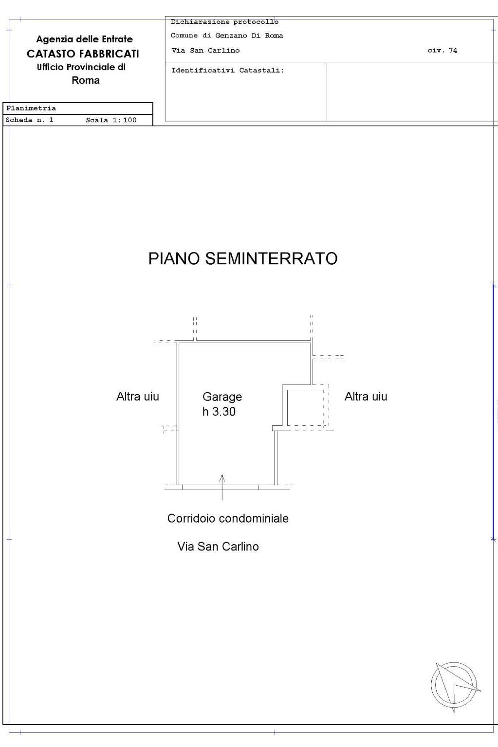 Genzano di Roma, centro, più precisamente in Via Cencio Baldazzi, in zona residenziale, vicina a tutti i servizi proponiamo in vendita un locale garage, categoria catastale C/6, posto al piano seminterrato del fabbricato.