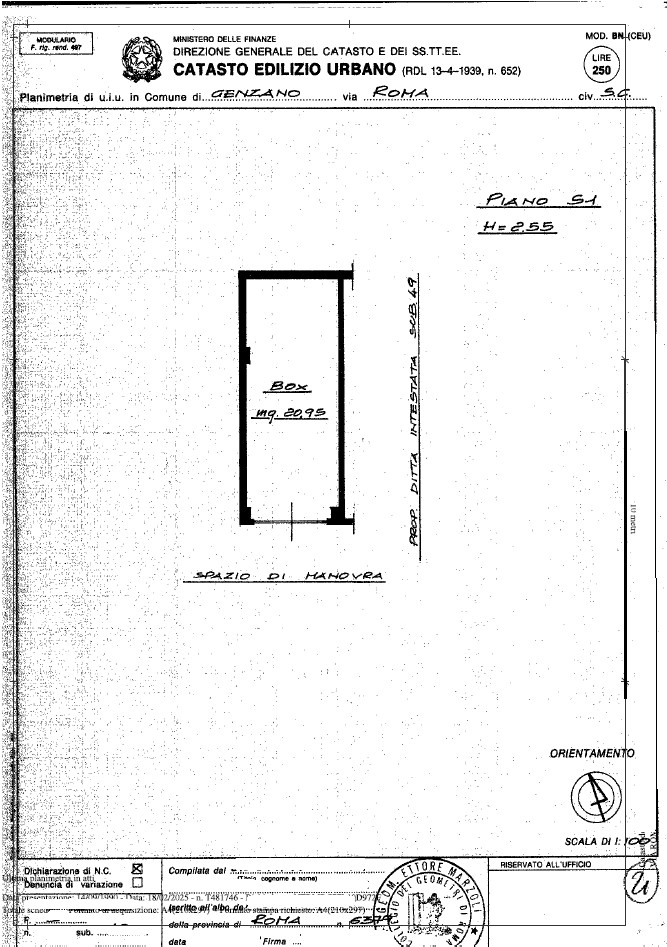 Possibilità di acquisto garage posto al piano seminterrato dello stabile con basculante ad apertura manuale di 21 mq.