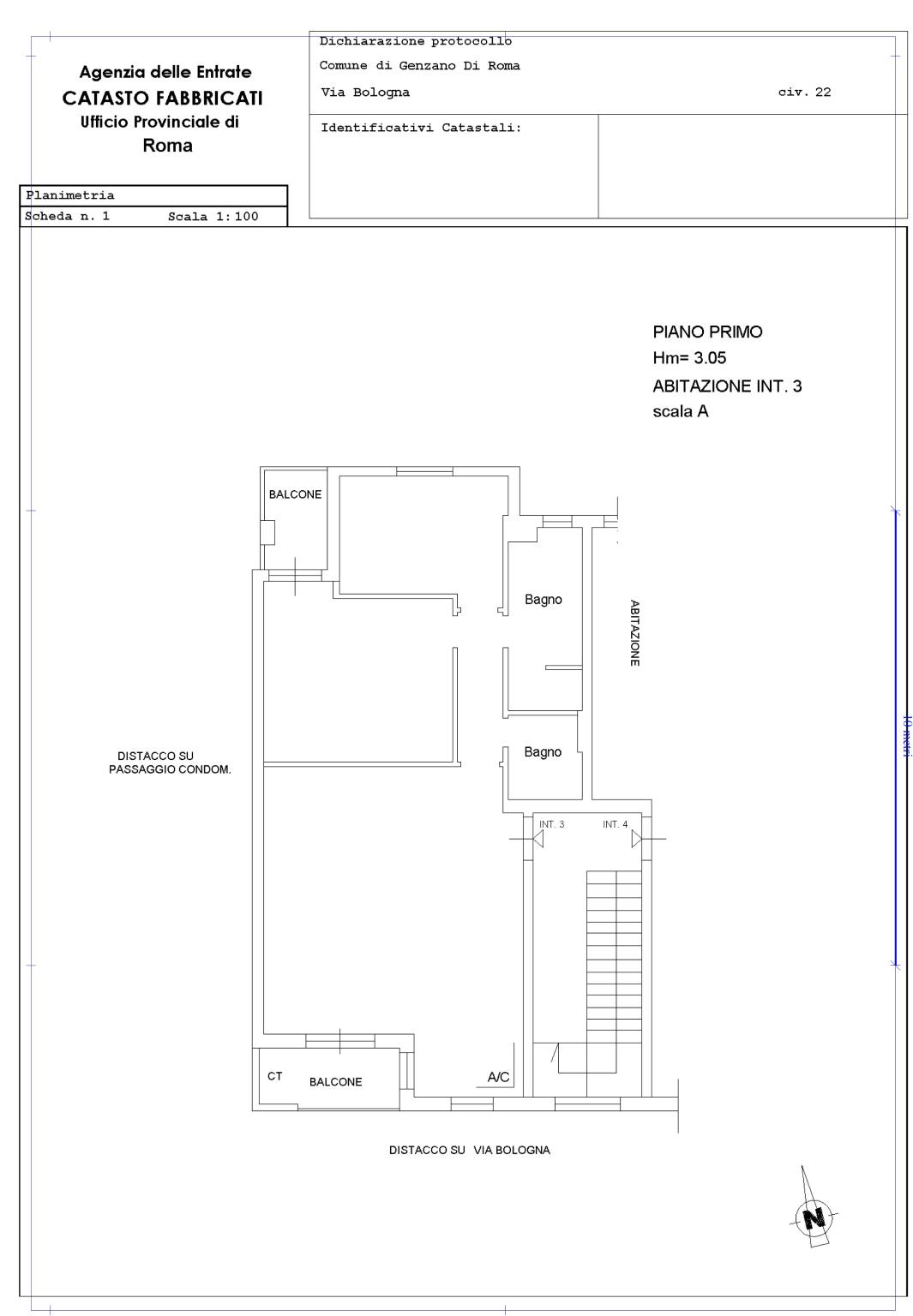 L'immobile ubicato al I° piano, non servito da ascensore, si sviluppa su una superficie complessiva di circa 87 mq ed è composto da ingresso nella zona giorno con salone ed angolo cottura, disimpegno, camera da letto matrimoniale, bagno finestrato con doccia, camera da letto singola, bagno cieco di servizio e due balconi di cui uno con uscita dalla zona giorno ed il secondo con uscita dalla camera da letto matrimoniale.