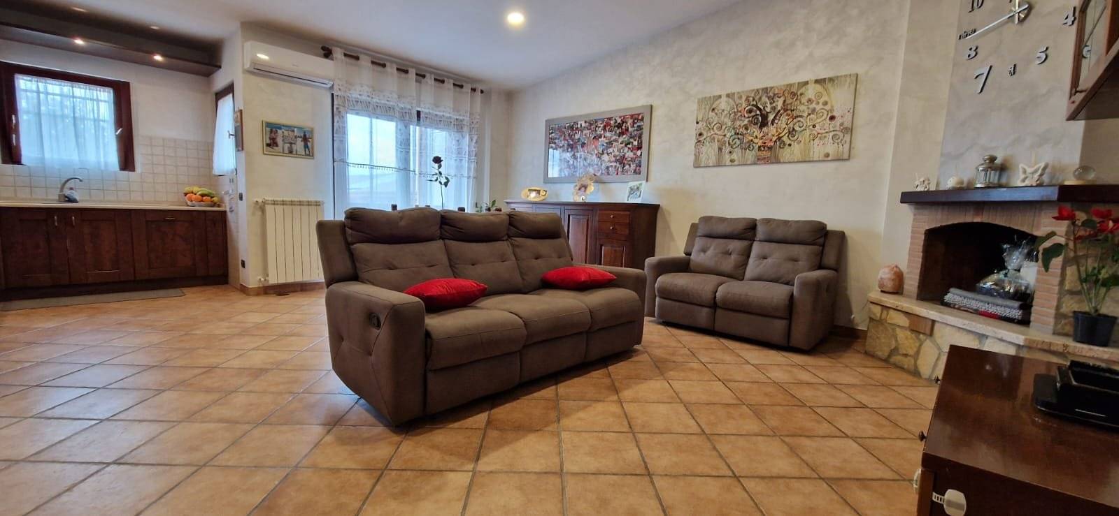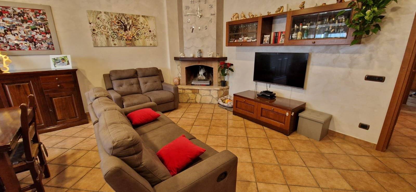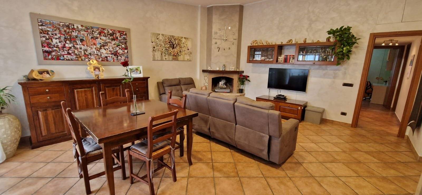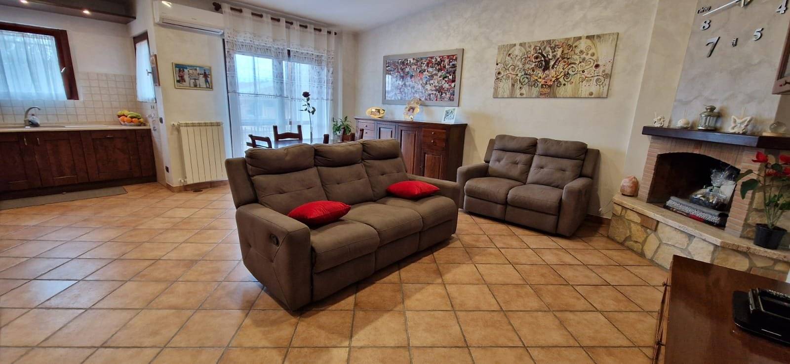 L'appartamento si presenta in ottime condizioni generali, dovute ad una completa ristrutturazione; in particolare è caratterizzato internamente da portone blindato, infissi in legno con vetrocamera, zanzariere, serrande in PVC ad apertura manuale, grate in ferro, pavimentazione in Grès Porcellanato effetto cotto uniforme in tutti gli ambienti, impianto elettrico in corrugato sfilabile con salva-vita, luci di emergenza, appartamento termo-autonomo alimentato a gas Metano, caldaia posizionata esternamente sul balcone, impianto termico in rame con radiatori in alluminio bianco, due condizionatori caldo/freddo della "Daitsu" posti uno nella zona giorno e dil secondo nella camera matrimoniale, camino nel salone.