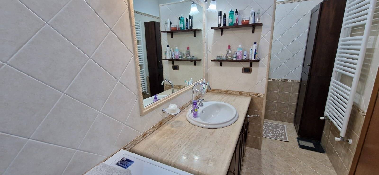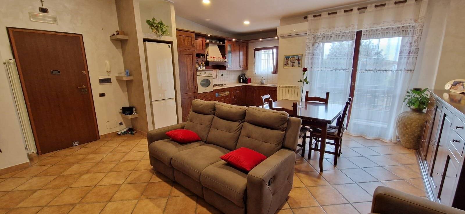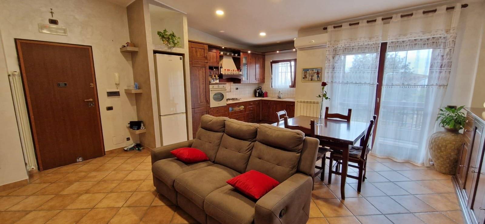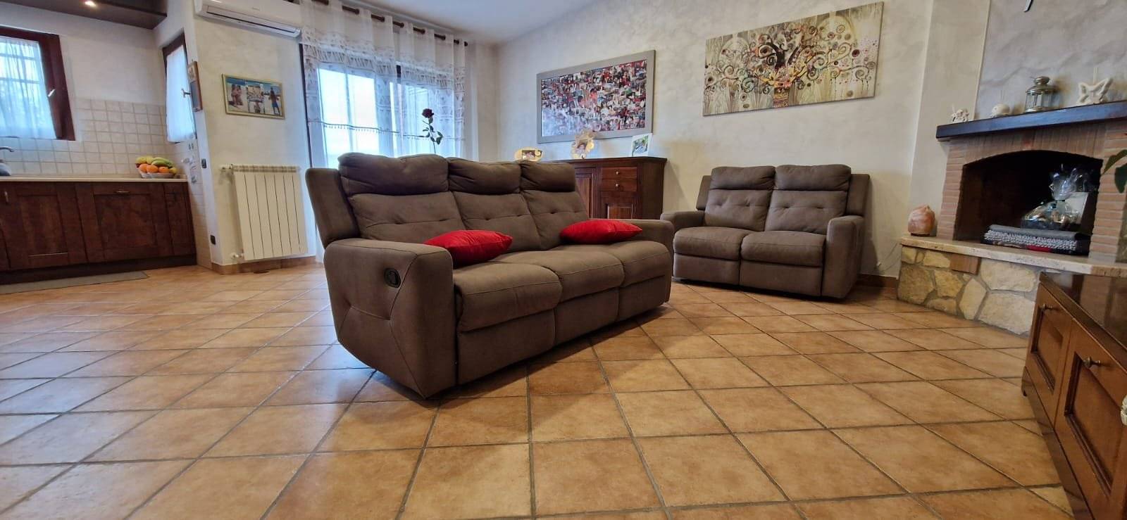 L'appartamento si presenta in ottime condizioni generali, dovute ad una completa ristrutturazione; in particolare è caratterizzato internamente da portone blindato, infissi in legno con vetrocamera, zanzariere, serrande in PVC ad apertura manuale, grate in ferro, pavimentazione in Grès Porcellanato effetto cotto uniforme in tutti gli ambienti, impianto elettrico in corrugato sfilabile con salva-vita, luci di emergenza, appartamento termo-autonomo alimentato a gas Metano, caldaia posizionata esternamente sul balcone, impianto termico in rame con radiatori in alluminio bianco, due condizionatori caldo/freddo della "Daitsu" posti uno nella zona giorno e dil secondo nella camera matrimoniale, camino nel salone.