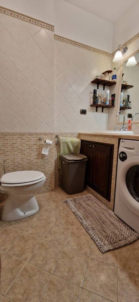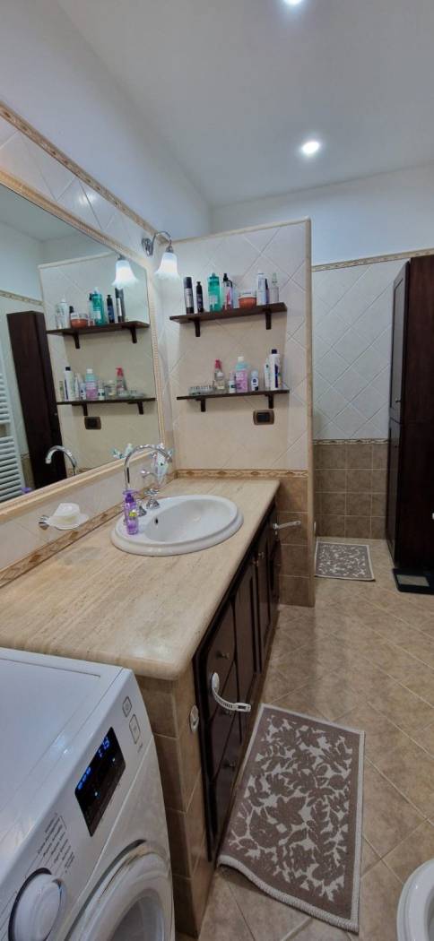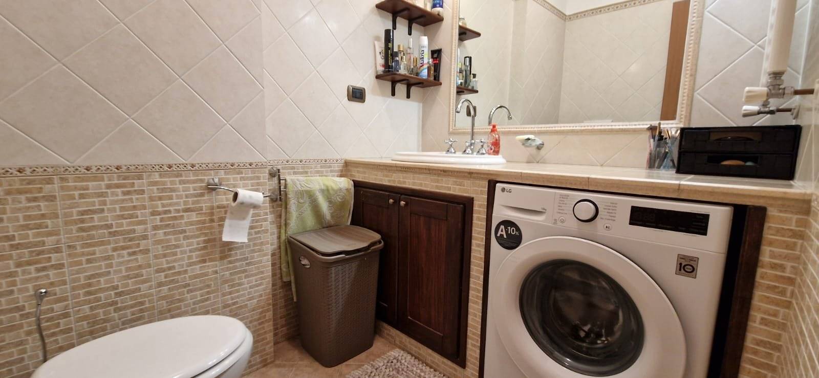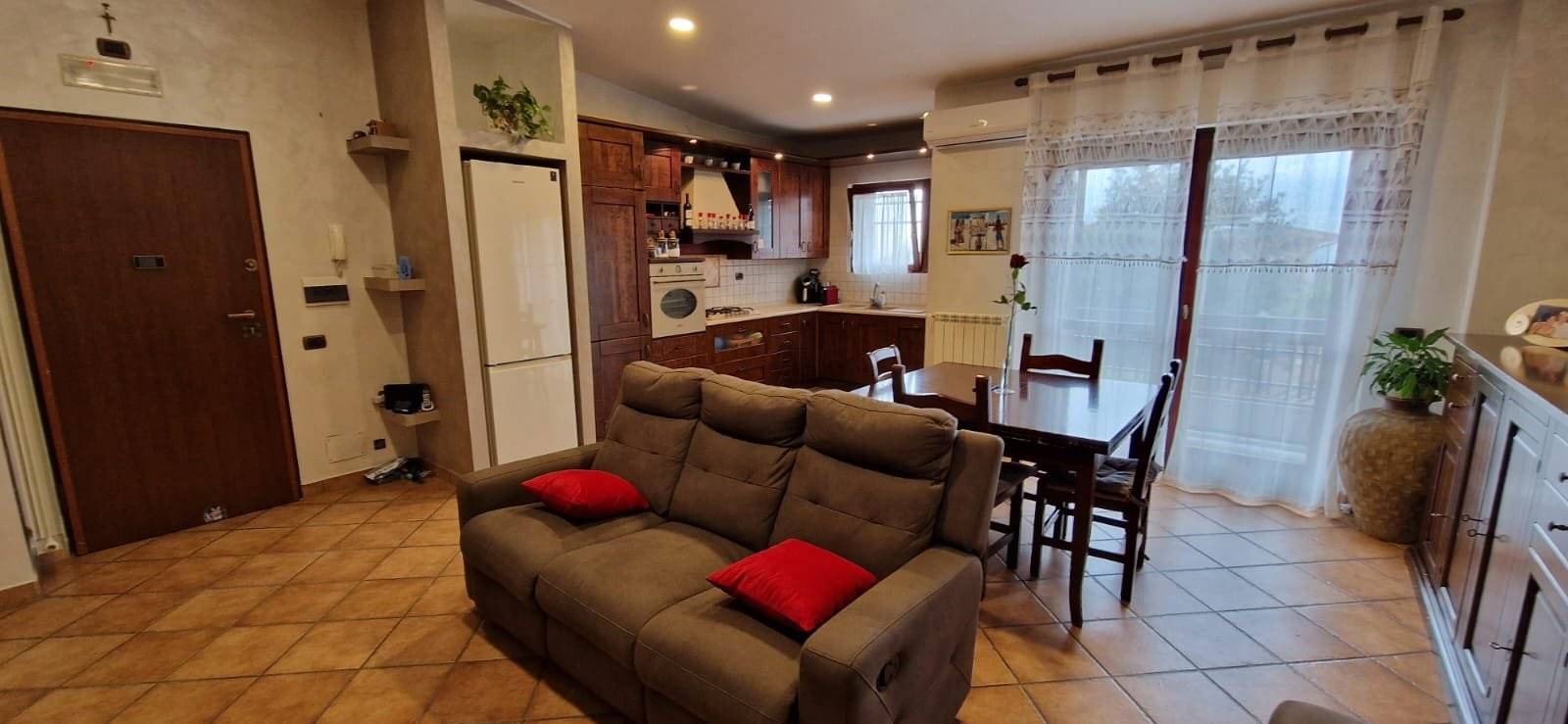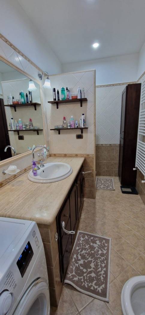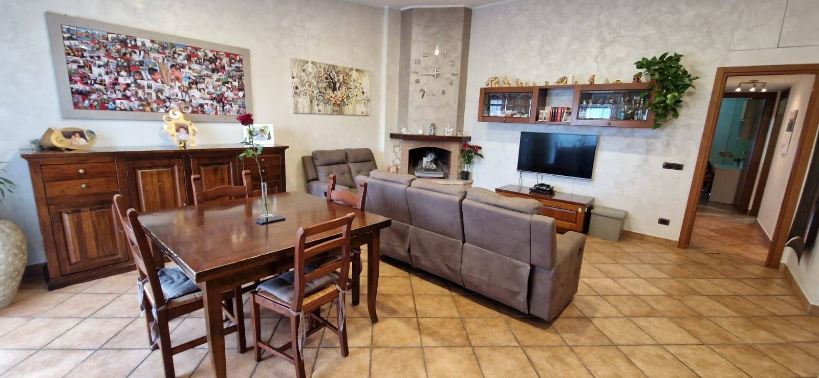 L'appartamento si presenta in ottime condizioni generali, dovute ad una completa ristrutturazione; in particolare è caratterizzato internamente da portone blindato, infissi in legno con vetrocamera, zanzariere, serrande in PVC ad apertura manuale, grate in ferro, pavimentazione in Grès Porcellanato effetto cotto uniforme in tutti gli ambienti, impianto elettrico in corrugato sfilabile con salva-vita, luci di emergenza, appartamento termo-autonomo alimentato a gas Metano, caldaia posizionata esternamente sul balcone, impianto termico in rame con radiatori in alluminio bianco, due condizionatori caldo/freddo della "Daitsu" posti uno nella zona giorno e dil secondo nella camera matrimoniale, camino nel salone.