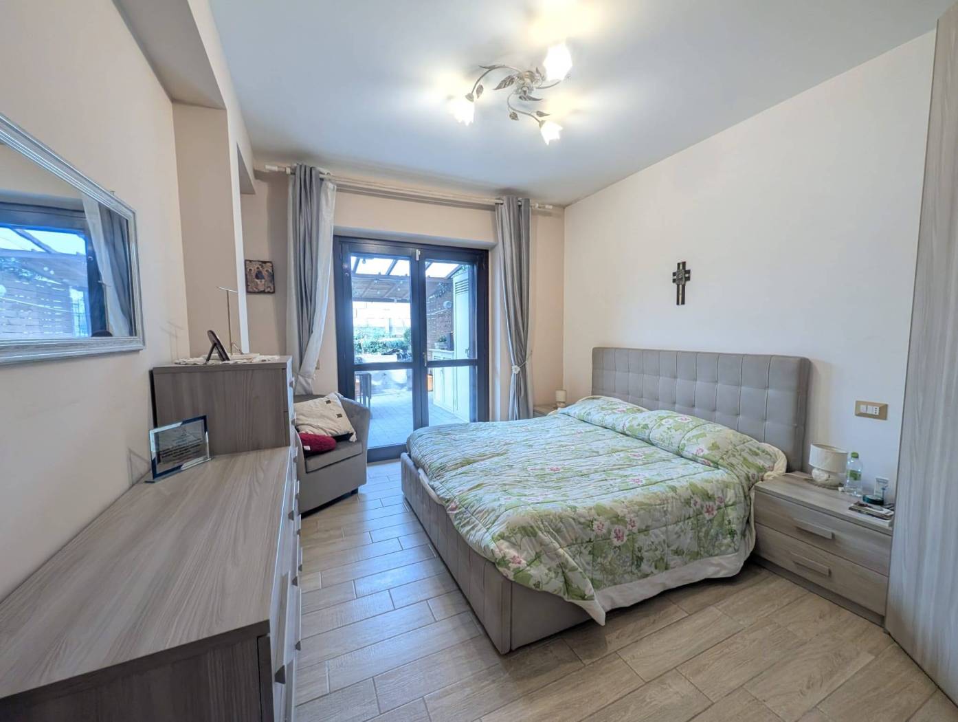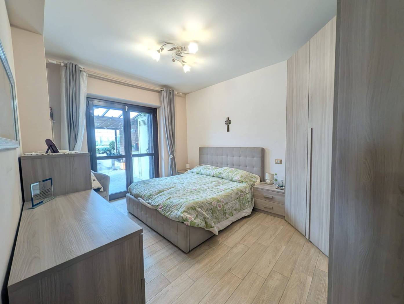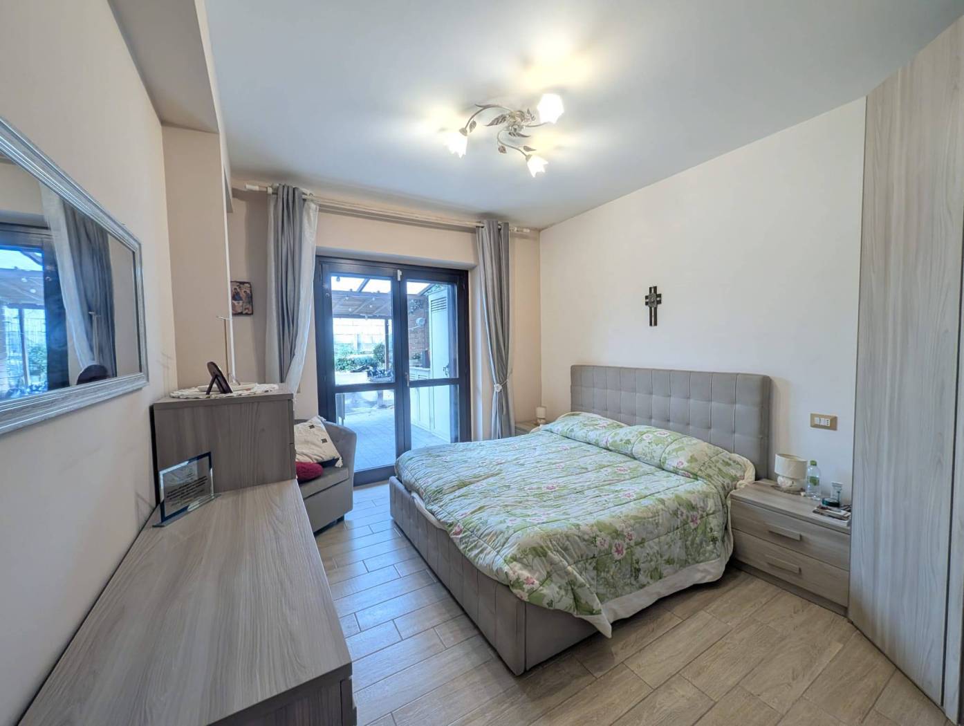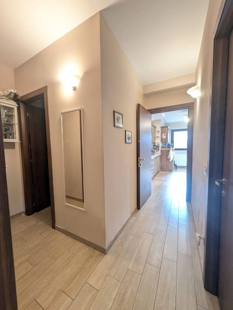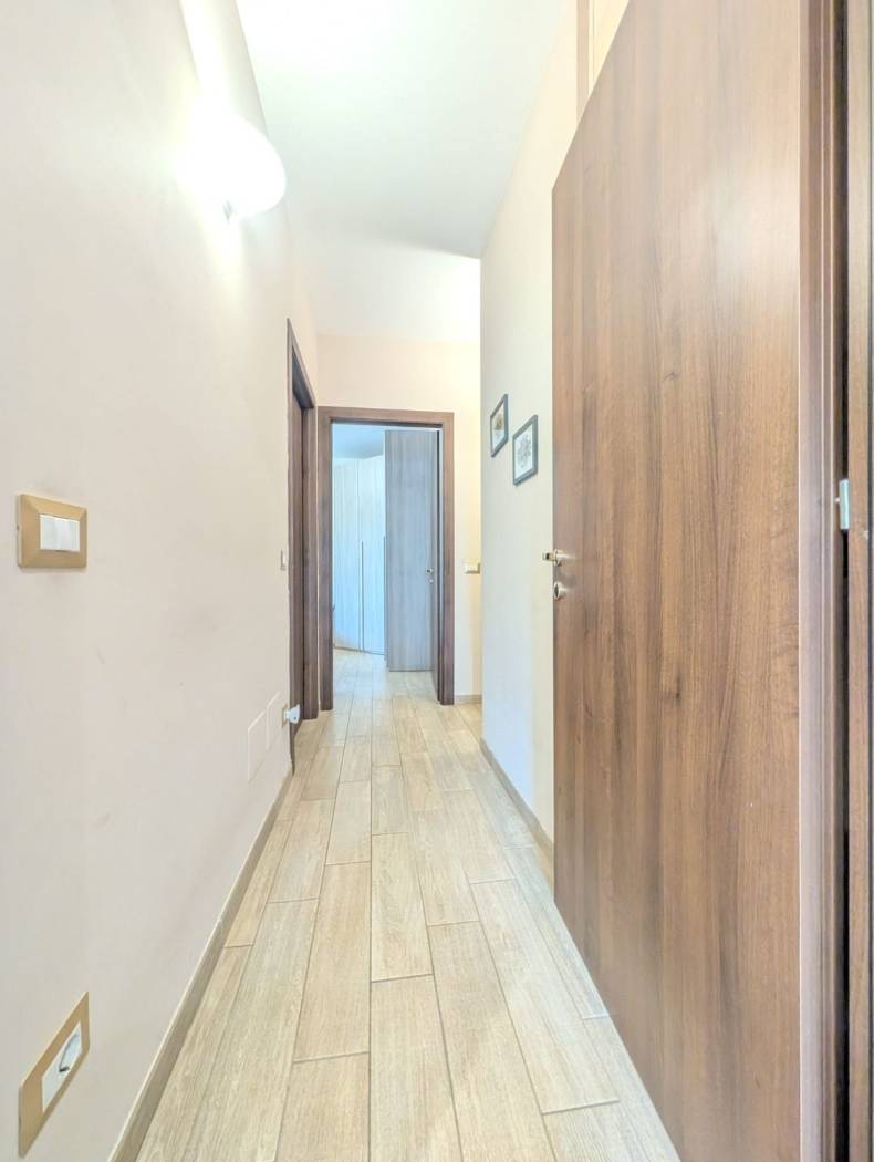 L'appartamento si presenta in ottime condizioni dovute al recente periodo di costruzione del fabbricato (i lavori furono ultimati nel 2016); in particolare è caratterizzato internamente da portone blindato a cilindro europeo, videocitofono, pavimentazione in Grès Porcellanato uniforme in tutti gli ambienti, infissi in legno con vetrocamera da 16 mm, persiane blindate, sanitari filomuro, impianto elettrico in corrugato sfilabile con salva-vita a norma, luci di emergenza, appartamento termo-autonomo, alimentato a gas Metano ed impianto in rame con radiatori in alluminio bianco, l'appartamento è collegato a pannelli fotovoltaici e pannelli solari.