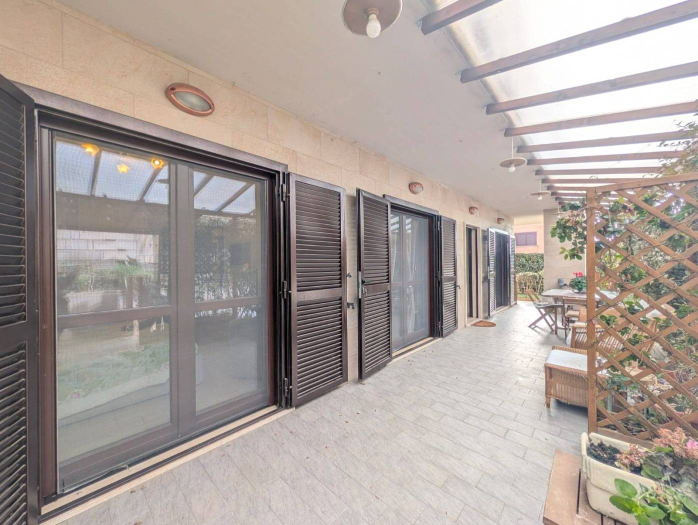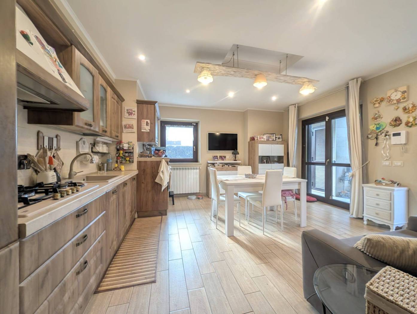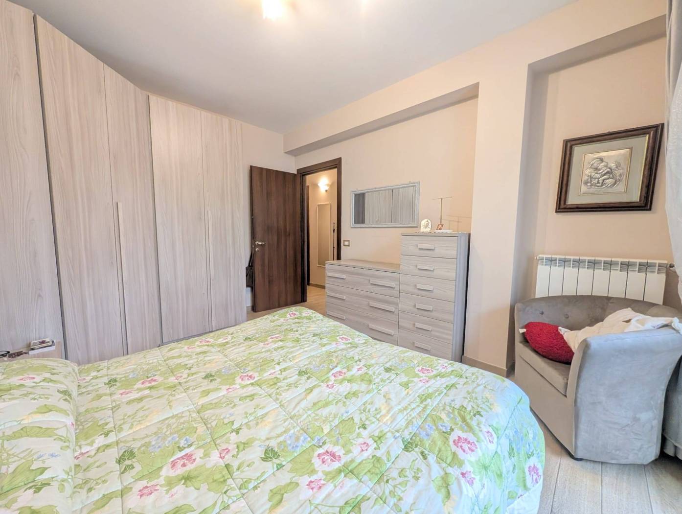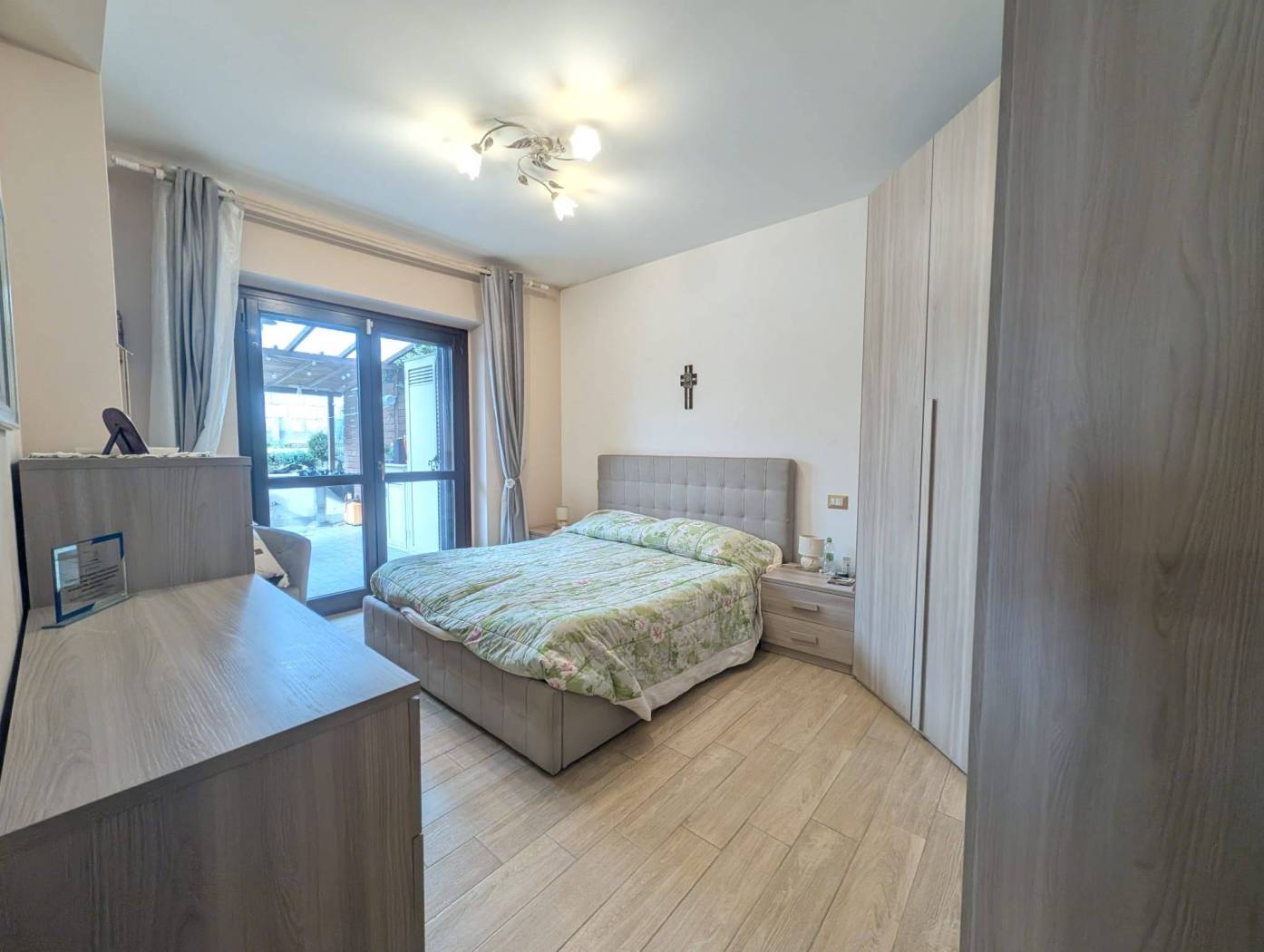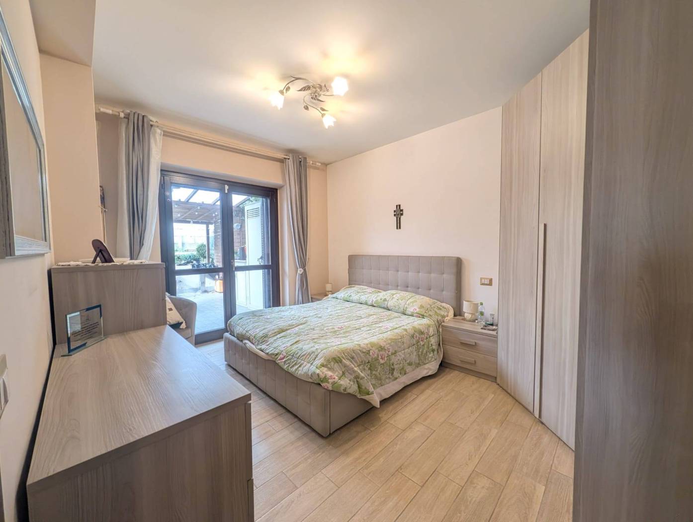 L'appartamento si presenta in ottime condizioni dovute al recente periodo di costruzione del fabbricato (i lavori furono ultimati nel 2016); in particolare è caratterizzato internamente da portone blindato a cilindro europeo, videocitofono, pavimentazione in Grès Porcellanato uniforme in tutti gli ambienti, infissi in legno con vetrocamera da 16 mm, persiane blindate, sanitari filomuro, impianto elettrico in corrugato sfilabile con salva-vita a norma, luci di emergenza, appartamento termo-autonomo, alimentato a gas Metano ed impianto in rame con radiatori in alluminio bianco, l'appartamento è collegato a pannelli fotovoltaici e pannelli solari.