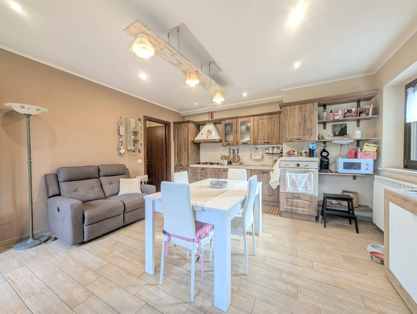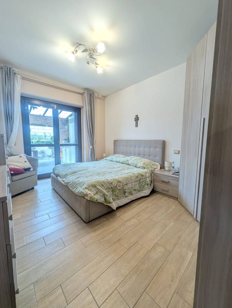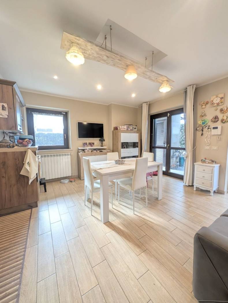 Proponiamo in vendita un appartamento in villa con ingresso indipendente e corte esterna privata, ubicato in una delle strutture di recente costruzione del Paese, posto al terra rialzato.