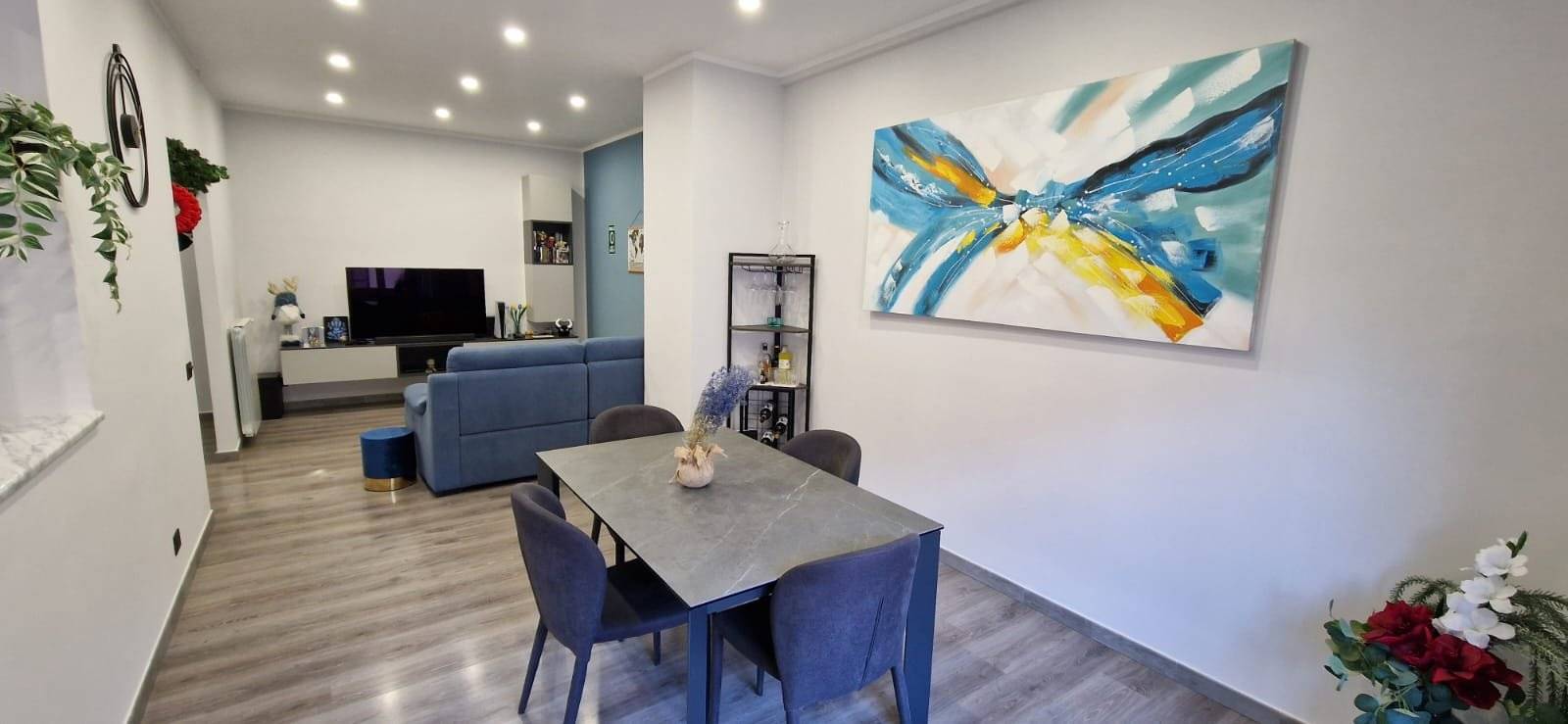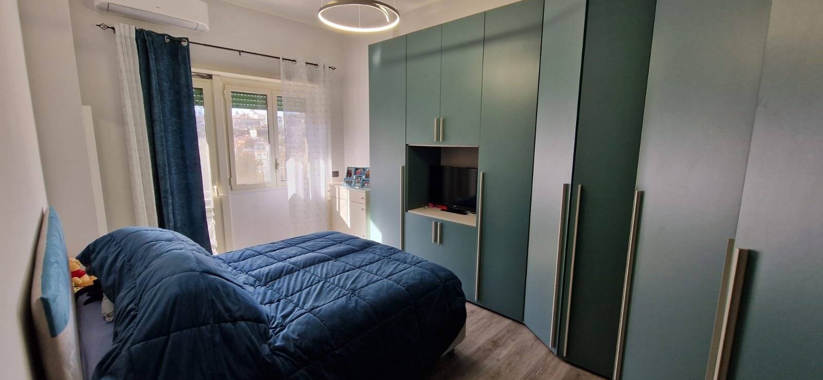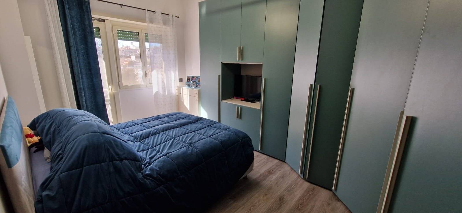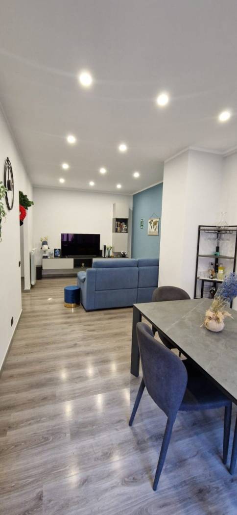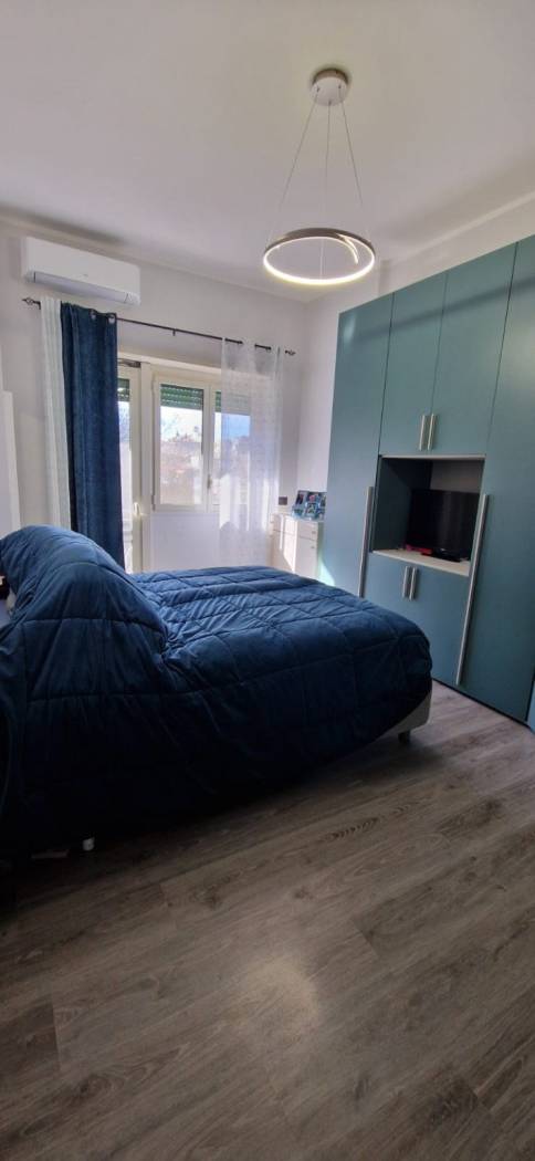 L'immobile si presenta in ottime condizioni generali, dovute ad una recente ristrutturazione (2021); in particolare è caratterizzato internamente da portone blindato, infissi in alluminio bianco con vetrocamera, zanzariere, serrande in PVC ad apertura automatizzata, pavimentazione in laminato uniforme in tutti gli ambienti, nel cucinotto è in Grès Porcellanato, impianto elettrico in corrugato sfilabile con salva-vita, luci di emergenza, appartamento termo-autonomo alimentato a gas Metano, caldaia posizionata esternamente sul balcone, impianto termico in multistrato con radiatori in alluminio bianco, tre condizionatori caldo/freddo posti uno nella zona giorno e nelle rispettive camere da letto.