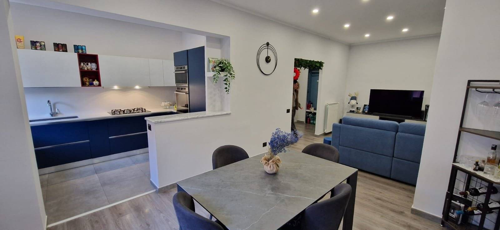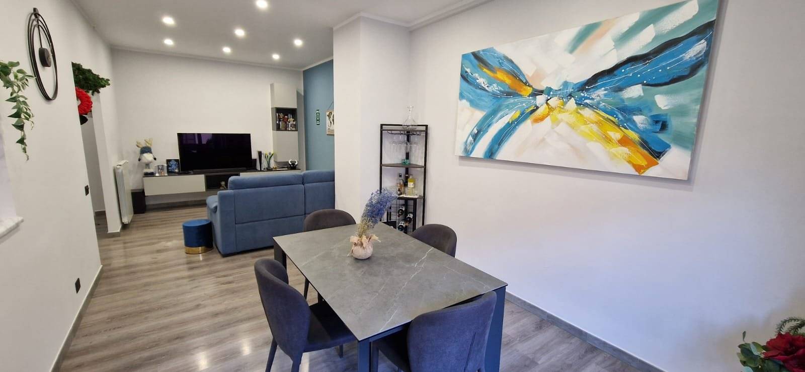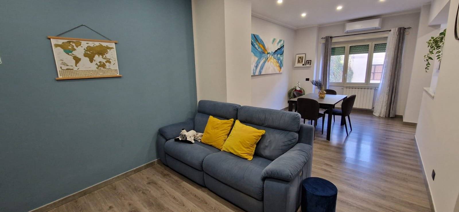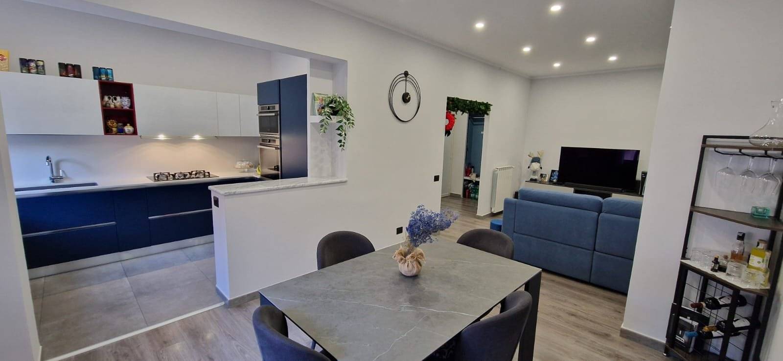 L'immobile si presenta in ottime condizioni generali, dovute ad una recente ristrutturazione (2021); in particolare è caratterizzato internamente da portone blindato, infissi in alluminio bianco con vetrocamera, zanzariere, serrande in PVC ad apertura automatizzata, pavimentazione in laminato uniforme in tutti gli ambienti, nel cucinotto è in Grès Porcellanato, impianto elettrico in corrugato sfilabile con salva-vita, luci di emergenza, appartamento termo-autonomo alimentato a gas Metano, caldaia posizionata esternamente sul balcone, impianto termico in multistrato con radiatori in alluminio bianco, tre condizionatori caldo/freddo posti uno nella zona giorno e nelle rispettive camere da letto.